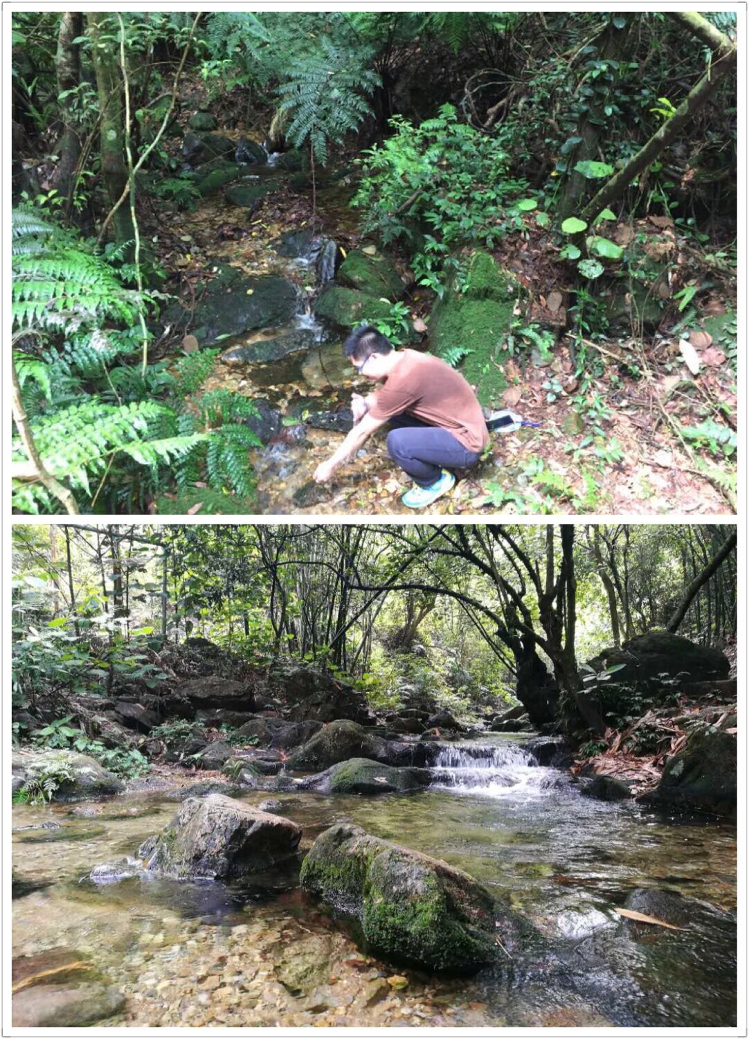 走過(guò)崎嶇的山路,便來(lái)到了小溪邊,小溪的水清澈見(jiàn)底,不由地捧起一手,喝了下去。溪水真涼呀,進(jìn)入口中有一種甘甜和涼爽直沁肺腑,全身有種說(shuō)不出的暢快,暑氣消失了不少,溪邊不時(shí)有清風(fēng)吹來(lái),風(fēng)中還夾帶著絲絲香氣。