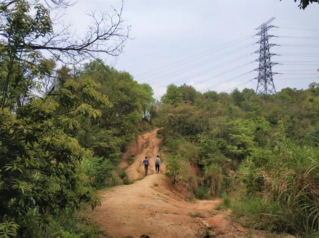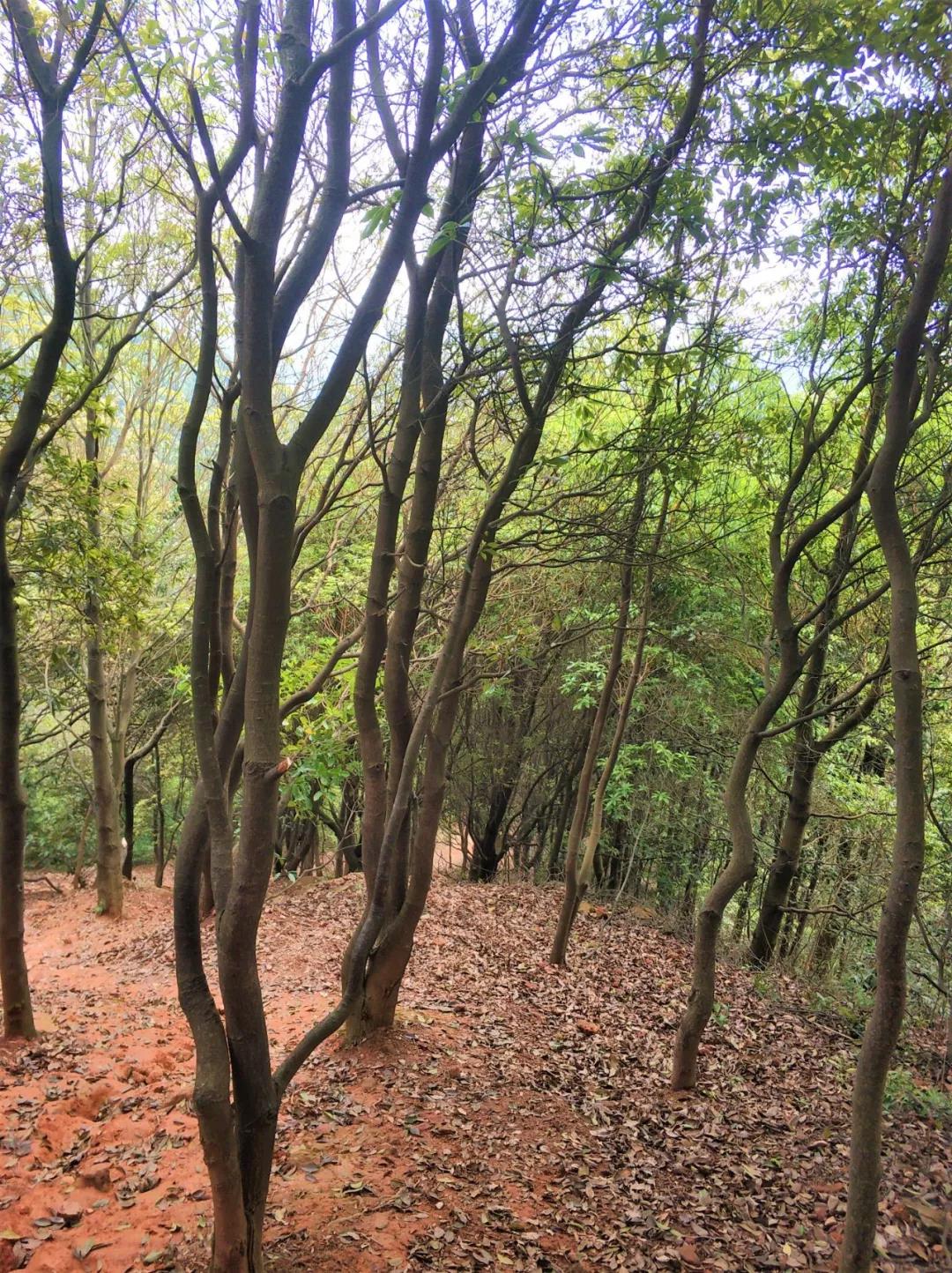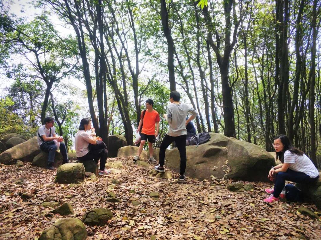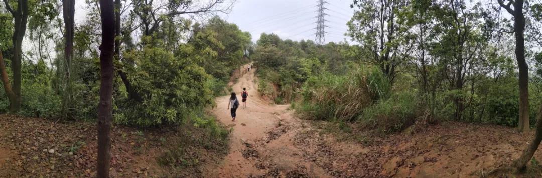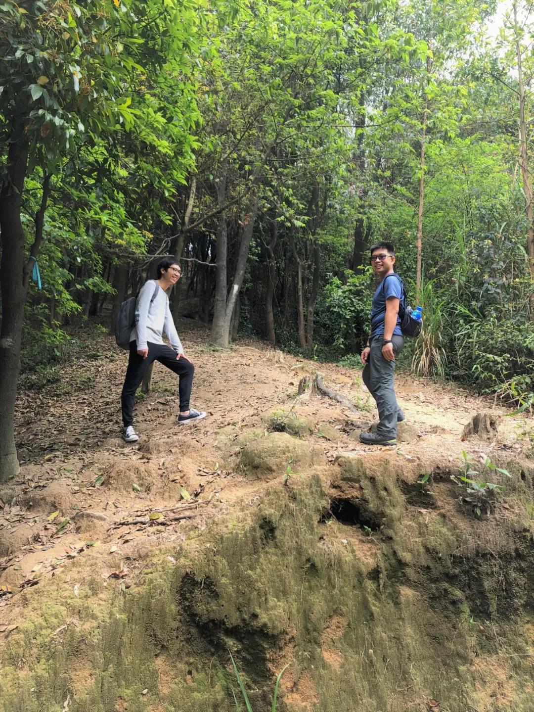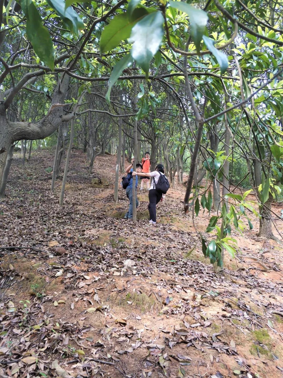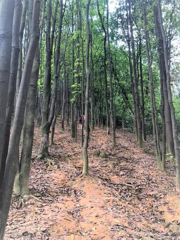 果然,走上這條山路后的風(fēng)景與之前的完全不同。已經(jīng)沒有人工鋪設(shè)好的石階,只有鋪滿落葉、起起伏伏的坡道和茂密的樹林,恍惚間大家似乎進(jìn)入了一個(gè)與世隔絕的世界。同行的來自北方的同事也不禁感嘆:“沒想到廣州還有這樣的森林啊。”