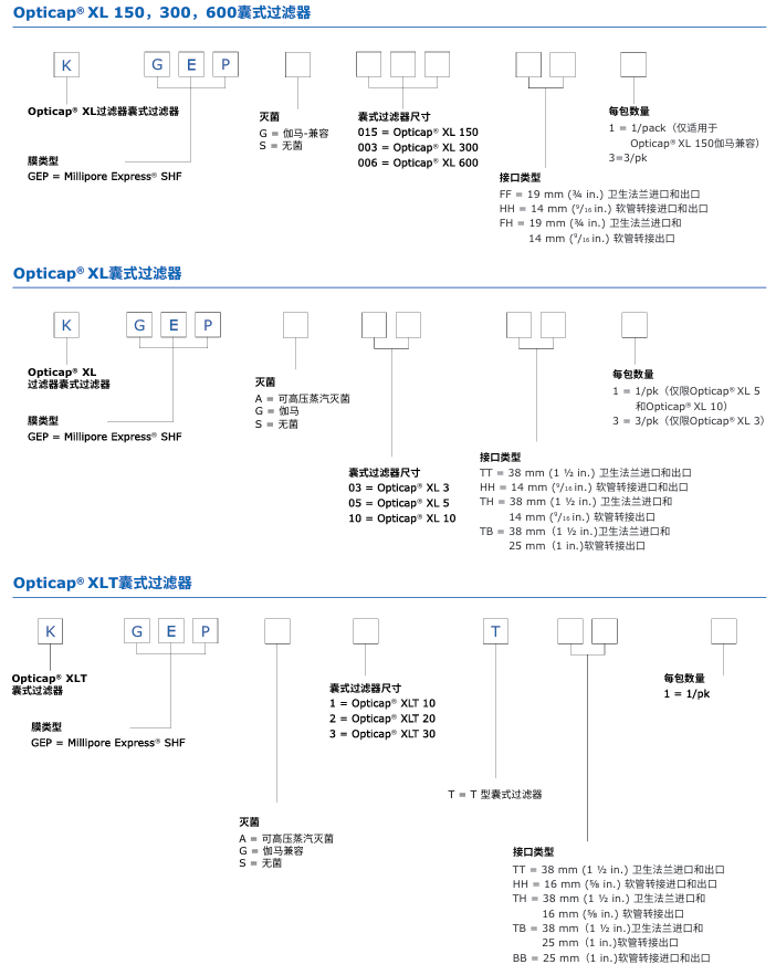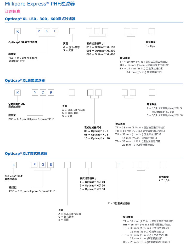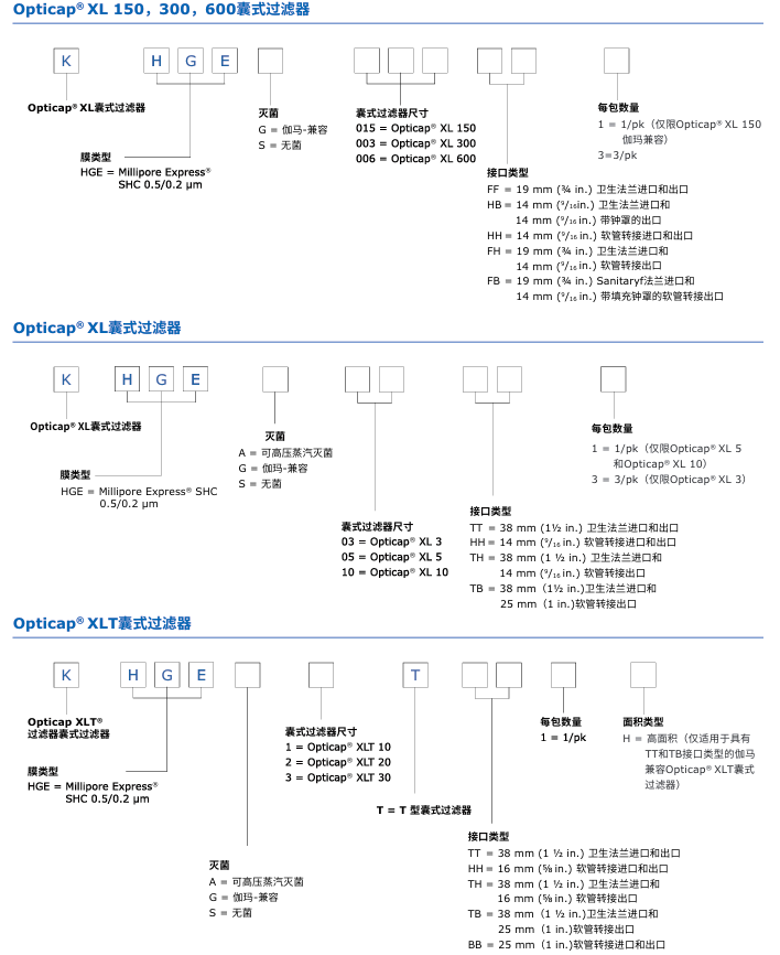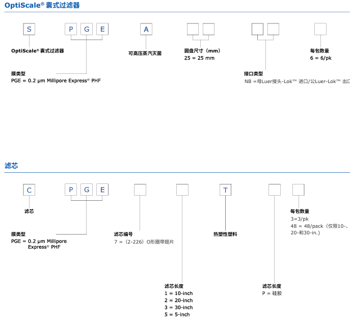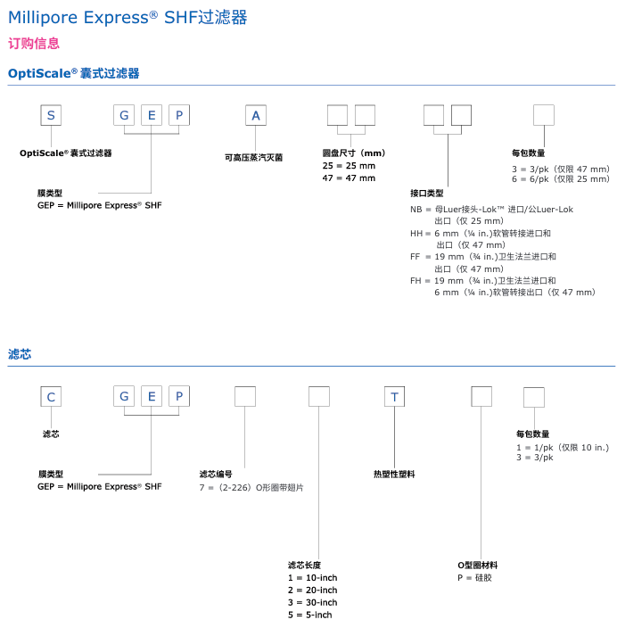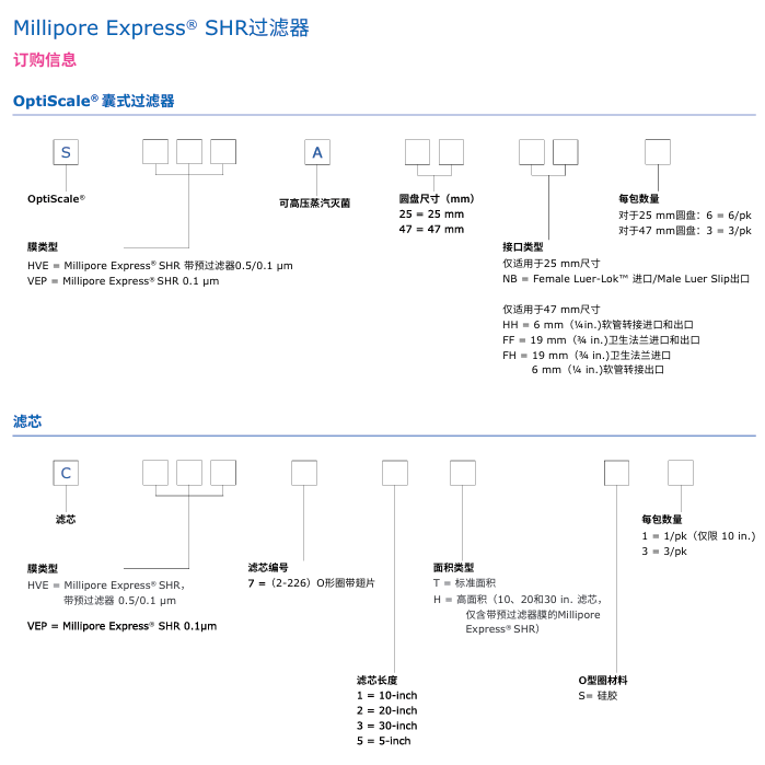 Millipore Express® 過濾器系列具有以下幾種過濾器: