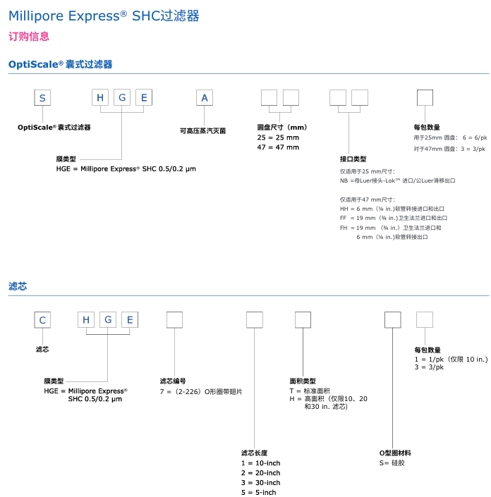 Millipore Express® SHC 過濾器除菌、高載量:用于易堵塞料液的高載量、除菌級過濾器。包含兩層PES膜層; 0.5/0.2 µm。