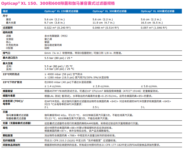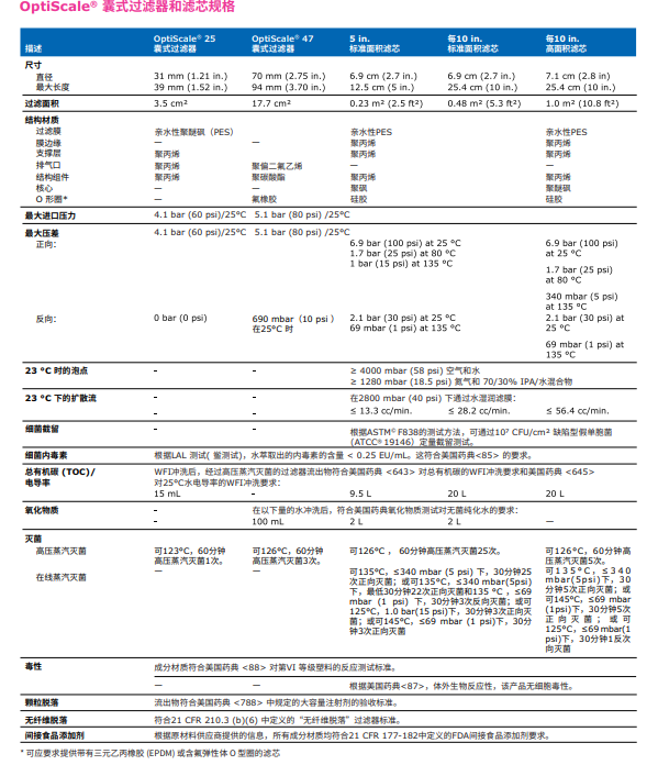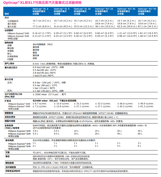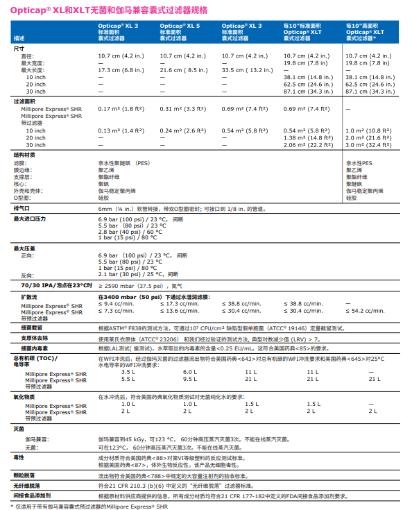 Millipore Express® SHF 過濾器的技術(shù)參數(shù):