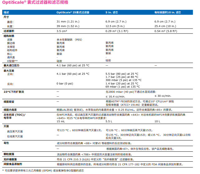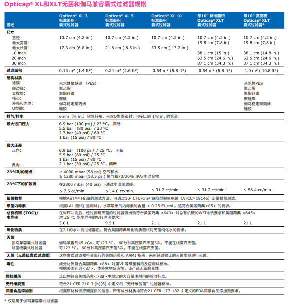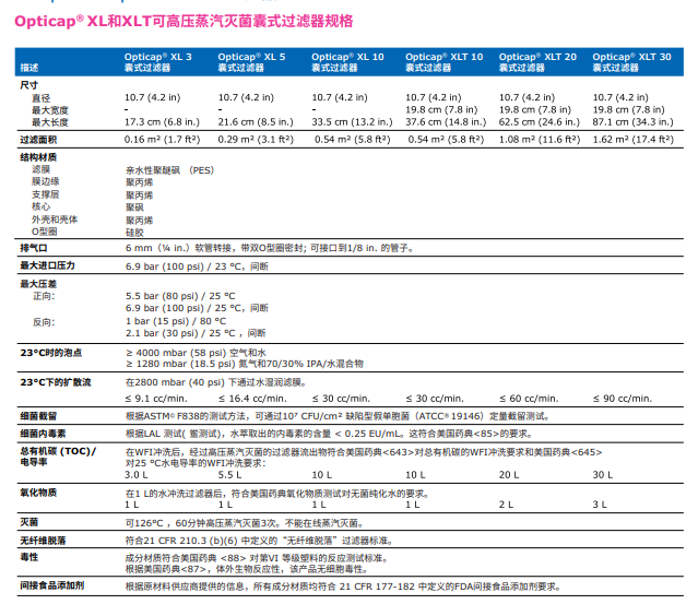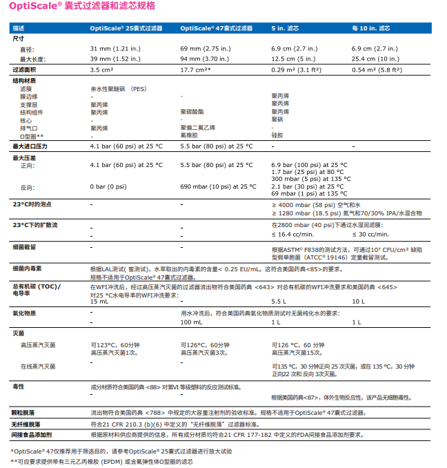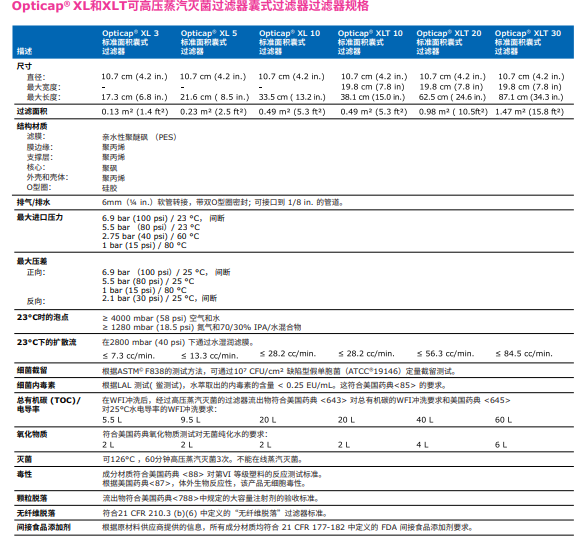 Millipore Express® PHF過濾器的技術(shù)參數(shù):
