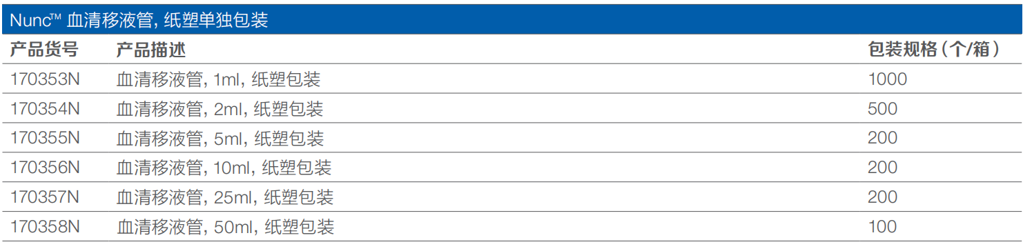 NUNC血清移液管采用高品質(zhì)聚苯乙烯材質(zhì),經(jīng)過嚴(yán)格的滅菌處理,確保無DNA、RNA及熱原污染,適用于細胞培養(yǎng)等高要求實驗操作。產(chǎn)品具有清晰的刻度標(biāo)識,讀數(shù)直觀準(zhǔn)確,配合彩色編碼便于快速識別不同容量;管口經(jīng)特殊設(shè)計,兼容主流移液器具,減少液體殘留,提高操作效率。多種規(guī)格可選,滿足不同實驗需求,是實驗室日常液體處理的理想選擇。