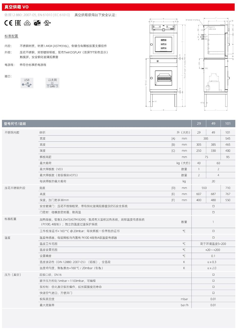 除了基本配置(一塊加熱擱板,兩個擱板連接口,VO29只有一個連接口)外,還提供有高級模塊以供選擇,以搭配更多的加熱擱板或擱板接口,或者通入惰性氣體保護,乃至遠程報警等復雜控制系統(tǒng)。