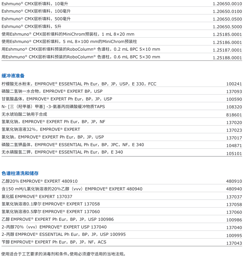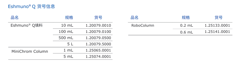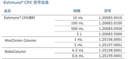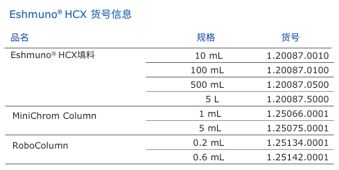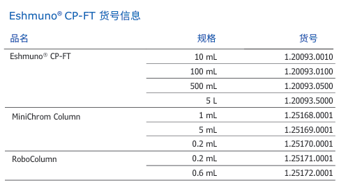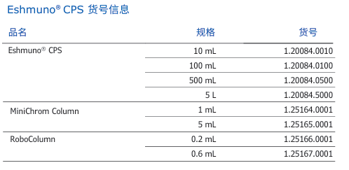 Eshmuno® CMX層析填料訂購(gòu)信息: