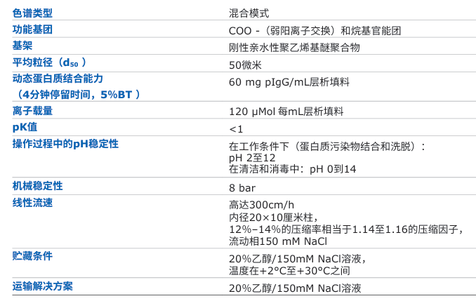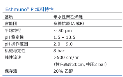 Eshmuno® P 層析填料耐酸耐堿的親和層析填料,可用于去除血漿提取的 免疫球蛋白 (Ig)中的anti-A和anti-B抗體