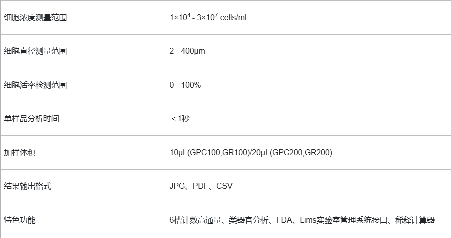 - 一款基于明場(chǎng)/臺(tái)盼藍(lán)染色原理的專業(yè)級(jí)細(xì)胞計(jì)數(shù)儀,擁有市面上最快的分析速度,高分辨率的光學(xué)成像系統(tǒng),以及可自由調(diào)節(jié)的焦距軸