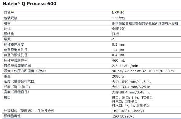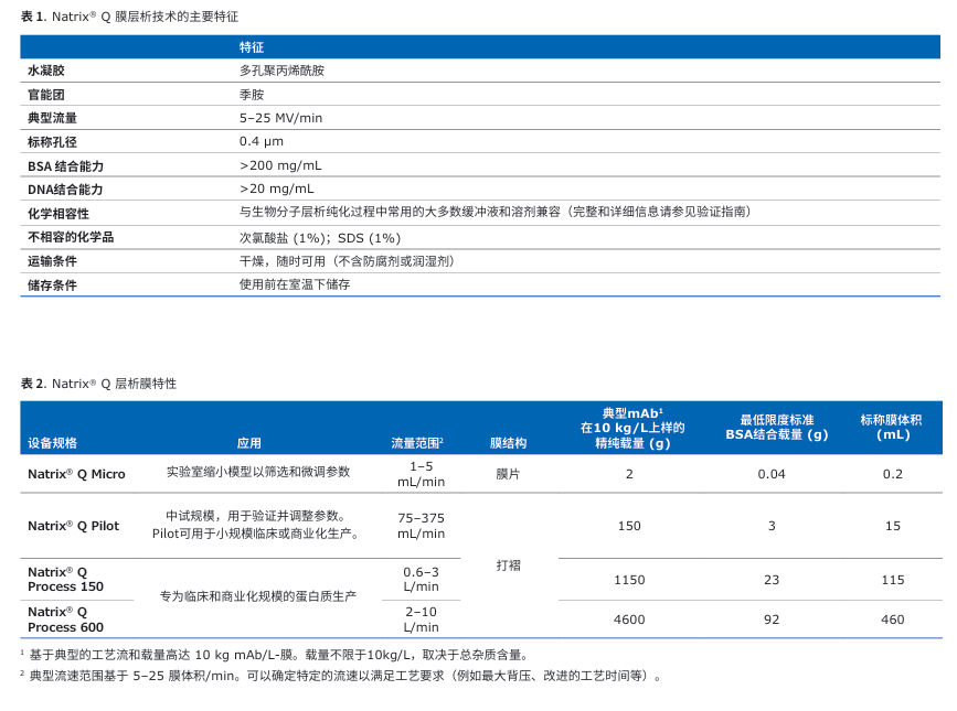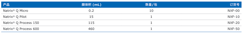 Natrix® Q 陰離子膜是一種多孔聚丙烯酰胺水凝膠,含有高密度的季銨 (Q) 側(cè)鏈結(jié)合基團(tuán),由惰性纖維網(wǎng)物理增強(qiáng)。相互連接的孔結(jié)構(gòu) (標(biāo)稱孔徑,0.4 μm)和高配體密度為蛋白質(zhì)結(jié)合提供了更大的接觸表面 積、高滲透性,并實(shí)現(xiàn)了高通量和高流速下的高載量(某些單抗載量可達(dá)到 10 kg/L),同時(shí)在這些極端操作條件下保持出色的雜質(zhì)清除率。結(jié)合成熟 的 Q 配體技術(shù),這些特性使 Natrix® 膜層析成為商業(yè)規(guī)模層析純化的絕 佳選擇。
