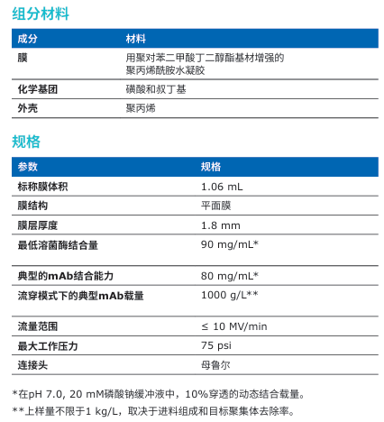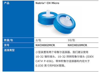 Natrix® CH陽離子膜層析通過獨(dú)特的陽離子交換和疏水相互作用選擇性, 保障聚集體去除或病毒清除的效果,同時(shí)縮短純化時(shí)間。Natrix® CH層析膜裝置可在流穿模式下快速 上樣,去除聚集體,消除了傳統(tǒng)CEX填料所需 的較長的上樣時(shí)間造成的工藝延遲。膜上修飾強(qiáng)陽離子交換 (磺酸鹽)和疏水(叔丁基)相互作用成分,使Natrix® CH裝置具 有獨(dú)特的流穿模式下清除聚集體的特性。