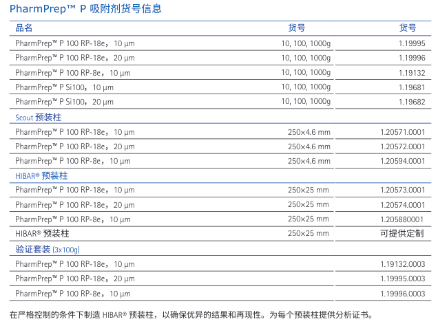 制備型液相層析 (LC) 的PharmPrep™ P 吸附劑是球形、多孔的硅膠載體,基質(zhì)為均勻、同質(zhì)的硅膠,粒徑分布窄,使填料擁有高性能和高填充穩(wěn)定性 ,可再現(xiàn)的比表面積和孔隙尺寸分布 ,機械穩(wěn)定性提高 ,制造質(zhì)量高,再現(xiàn)性好。有兩種粒徑: 10 μm 和20 μm。這些新型吸附劑的孔徑為100 Å (10 nm),非常適合用于短肽(如胰島素)和其他 生物制藥、制藥API(如抗生素和荷爾蒙)的純化步驟。