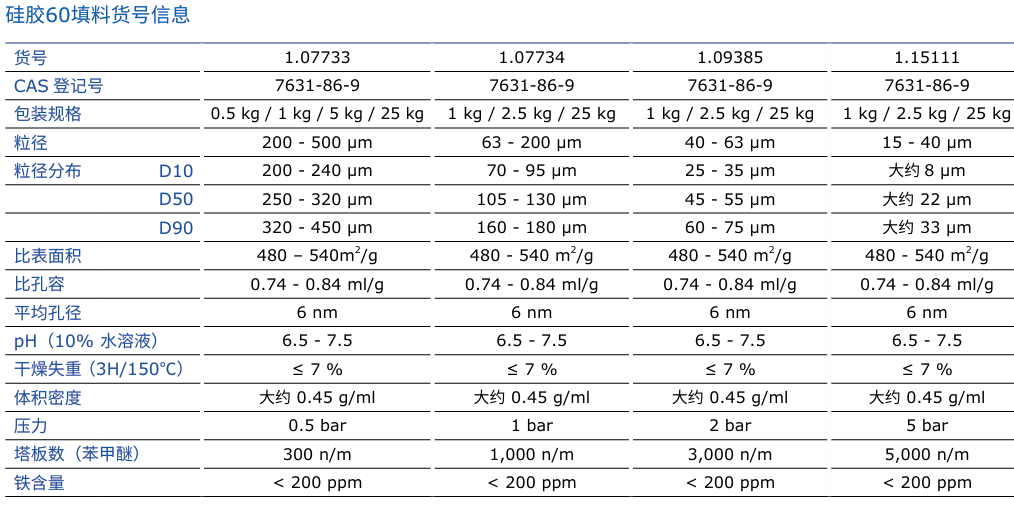硅膠60填料和氧化鋁90填料訂貨信息詳見上述技術信息。