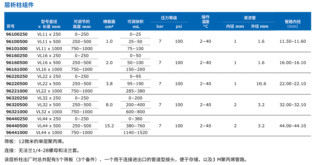 QuikScale®生物層析柱技術參數(shù):