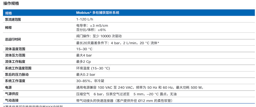 Mobius® 多柱捕獲層析系統(tǒng)技術參數(shù):