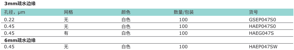 • 邊緣3或6mm疏水,可防止過濾樣品在膜片邊緣的殘留,適用于進(jìn)行抗生素或含抑菌物質(zhì)樣品的微生物檢驗(yàn)