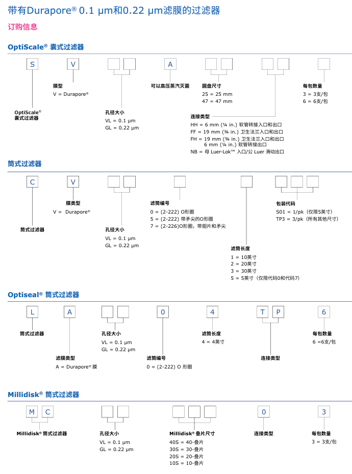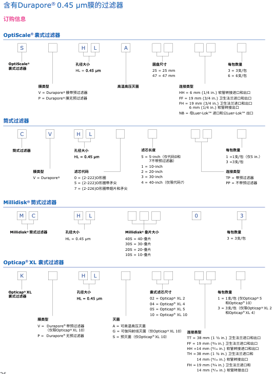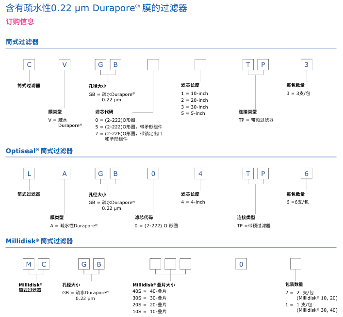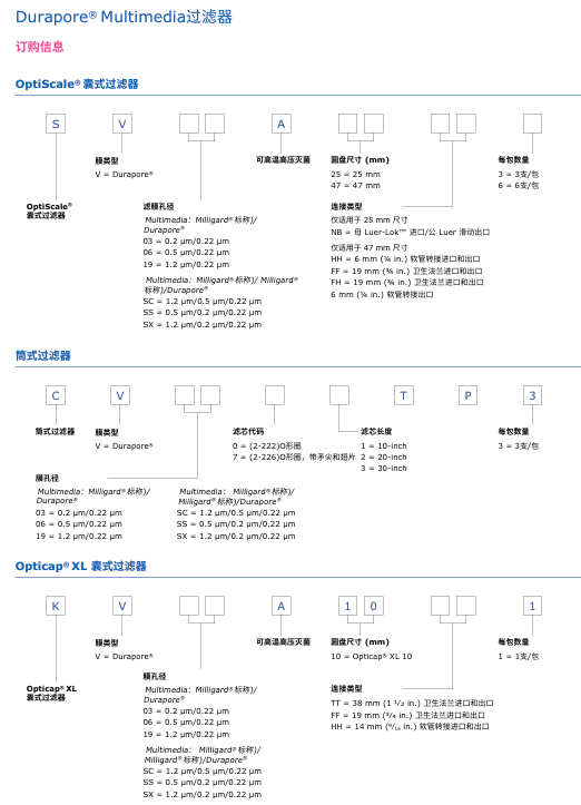 Durapore®濾膜系列包含以下品類: