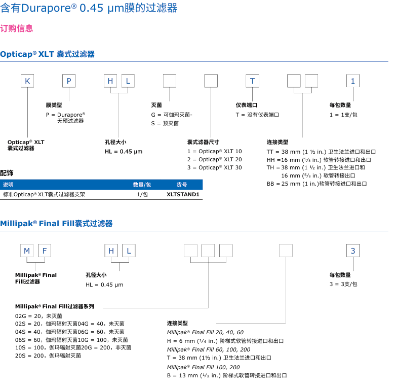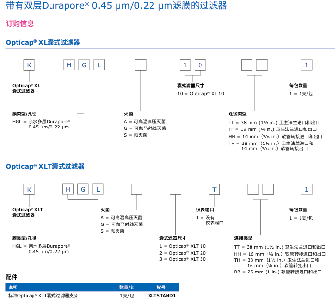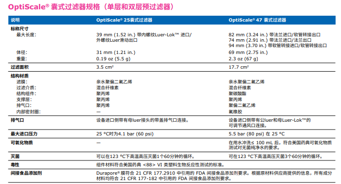 帶有雙層0.45 µm/0.22 µm Durapore® 濾膜的技術(shù)參數(shù):