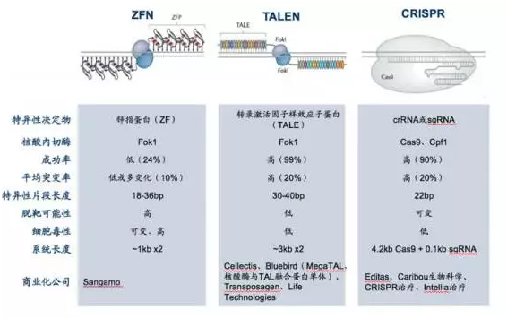 圖3. ZFN、TALEN和CRISPR技術(shù)比較