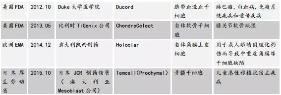 表2. 國(guó)內(nèi)外已獲批的干細(xì)胞產(chǎn)品
