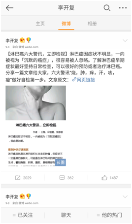李開復(fù)微博轉(zhuǎn)發(fā)的淋巴癌六大警訊