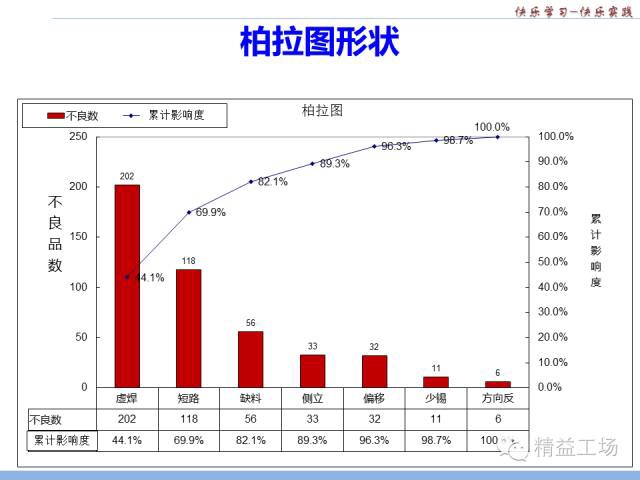 柏拉圖也叫重點(diǎn)分析圖、ABC分析圖,由此圖的發(fā)明者經(jīng)濟(jì)學(xué)家柏拉圖名字而得名。最早用于分析社會(huì)財(cái)富,并得出80%的財(cái)富掌握在20%的人手中。后來(lái),美國(guó)質(zhì)量學(xué)家朱蘭博士引用至質(zhì)量分析領(lǐng)域,用以直觀顯示影響質(zhì)量的主要因素。
