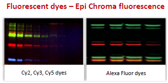 4、多色熒光成像,進行多種激發(fā)光對樣品進行激發(fā)成像。UVI成像系統(tǒng)支持多種熒光染料包括: