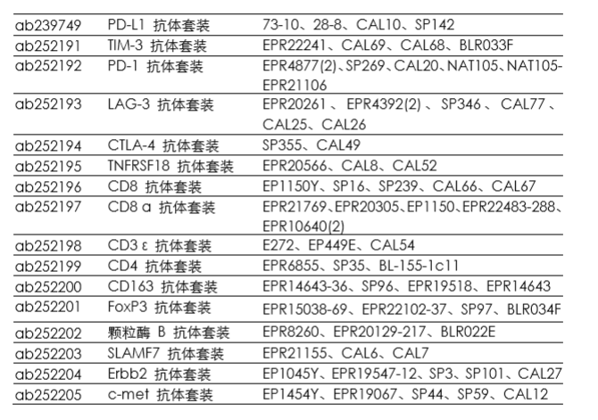 這些都是經(jīng)過精心挑選的腫瘤免疫(I-O )熱門靶標(biāo)重組抗體套裝,經(jīng)過實驗優(yōu)化,適用于人源樣本IHC檢測,包含2-6個小包裝同靶標(biāo)的不同兔單克隆抗體。每個抗體套裝的定價與單個同規(guī)格兔單克隆抗體相當(dāng),比單獨購買小包裝抗體性價比高。且所有套裝庫存充足,貨期非??臁D赏ㄟ^篩選確定最佳克隆號的抗體。