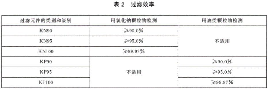 國(guó)標(biāo)《GB2626-2016呼吸防護(hù)用品自吸過濾式防顆粒物呼吸器》根據(jù)口罩的泄漏率與口罩本身的過濾效率將口罩分為90(KN90、KP90)、95(KN95、KP95)、100(KN100、KP100)三個(gè)等級(jí),分別如下: