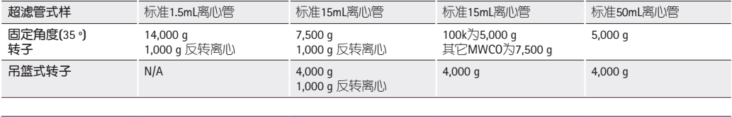 下圖為Millipore官方建議的最大離心力,大家使用時(shí)選擇小于或等于該離心力的數(shù)值即可。