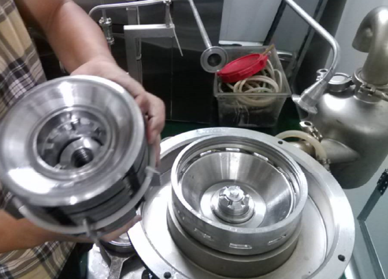 經(jīng)過CIP清洗后的阿法拉伐碟片式離心機(jī)內(nèi)部轉(zhuǎn)鼓