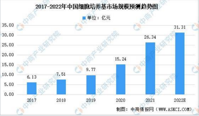 以細胞培養(yǎng)基業(yè)務(wù)為例。2021年,中國培養(yǎng)基市場規(guī)模達到了26.3億元,2017-2021年的復(fù)合年增長率為44.0%,預(yù)計2021-2026年的復(fù)合年增長率為22.0%。