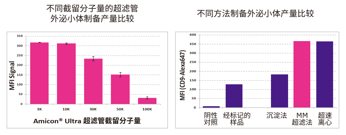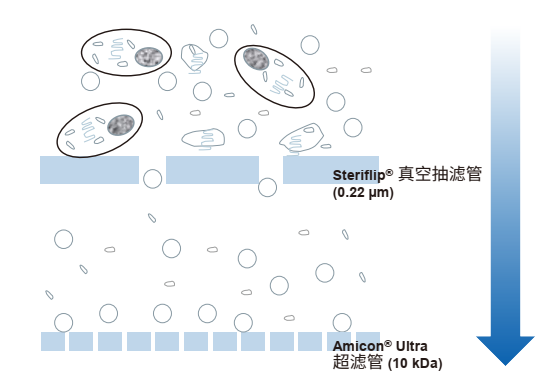 • 有血清樣品選擇100kDa/500kDa孔徑是為了盡可能去除細(xì)胞分泌蛋白以及血清成分中小于外泌體的白蛋白造成的影響;