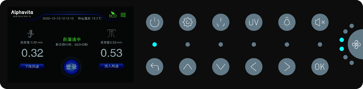 直觀了解設備運行狀態(tài),實時顯示下降、流入風速及過濾器剩余壽命。