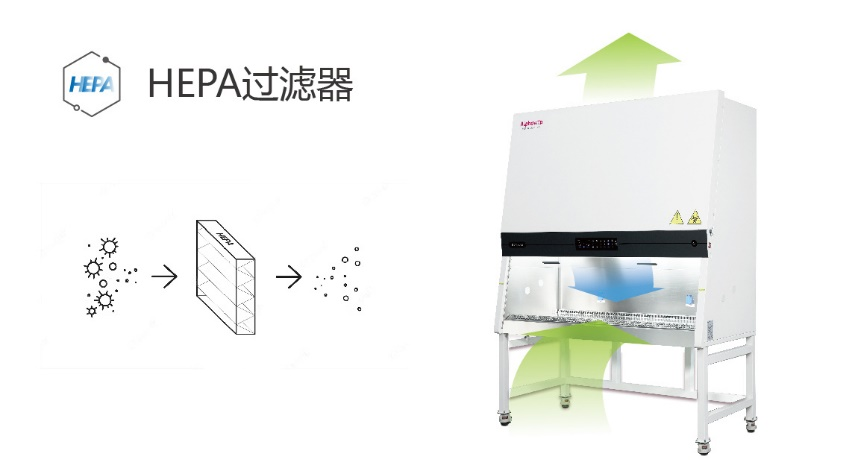 HEPA過濾器,過濾效率99.995%@MPPS(H14),配備過濾器壽命倒計時、過濾器壓差報警功能。