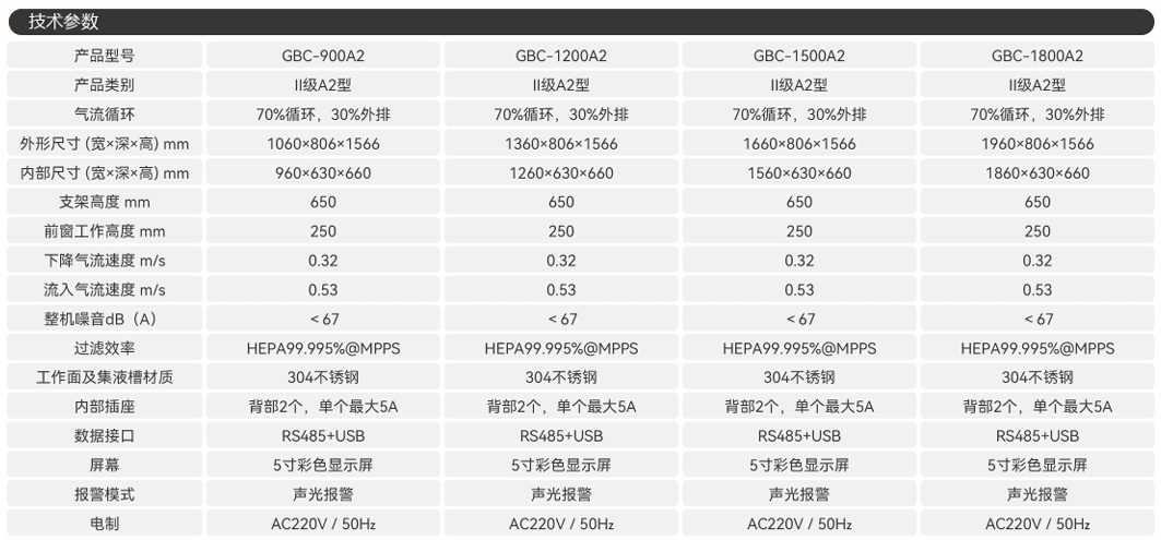 松洋生物Ⅱ級A2型 GBC系列生物安全柜集高顏值、高實用性、高性價比“三高”屬性于一體,獨立的下降風和外排風雙風機運行系統(tǒng)控制下降風速及流入風速,配合雙風速傳感器,實時檢測風速。搭載HEPA過濾器,過濾效率達99.995%@MPPS(H14)。保護實驗人員、樣本,提高實驗工作效率。