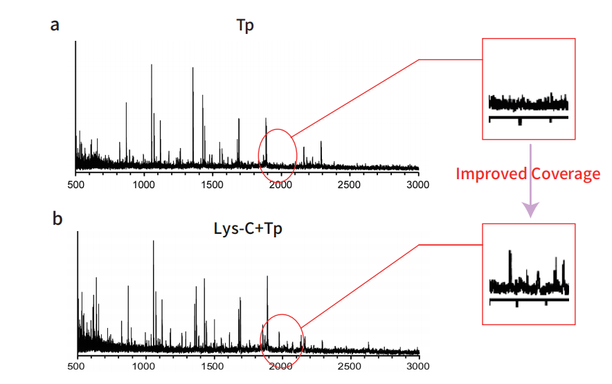 胰蛋白酶(Tp)(圖 a)和賴氨酰肽鏈內(nèi)切酶(Lys-C)+Tp( 圖 b)