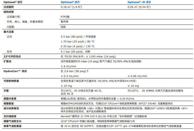 | 23°C時的擴(kuò)散 | 通過一個在965mbar(14psi)氮氣下的70/30IPA/水濕膜,每10英寸濾芯<24毫升/分鐘 | |
