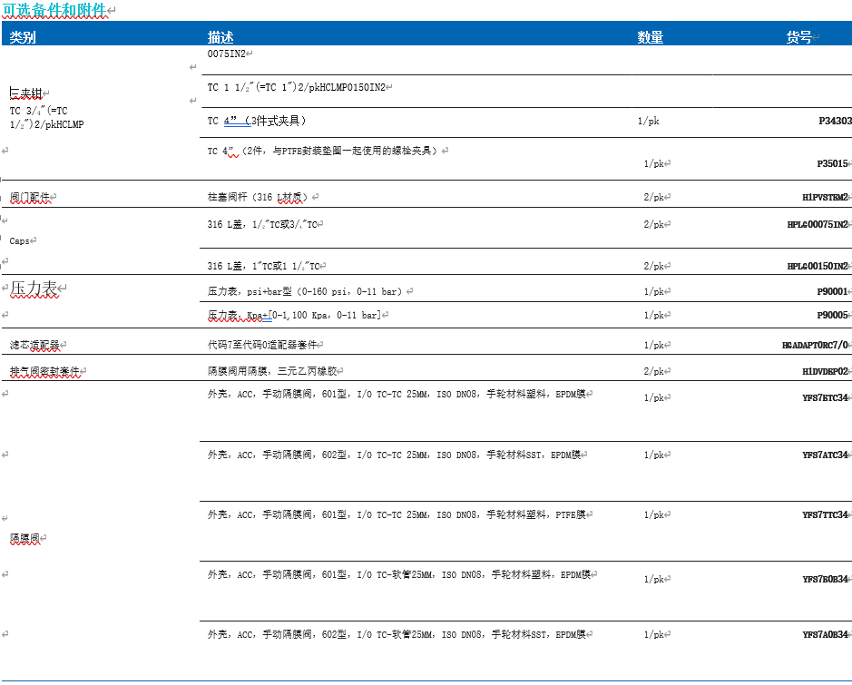 | 入口/出口TC DIN DN 25管=25.4 mm,TC=50.5 mm | 10" | H1WS1G01PP | 鋼絲形式 | 柱塞閥 | 柱塞閥 |