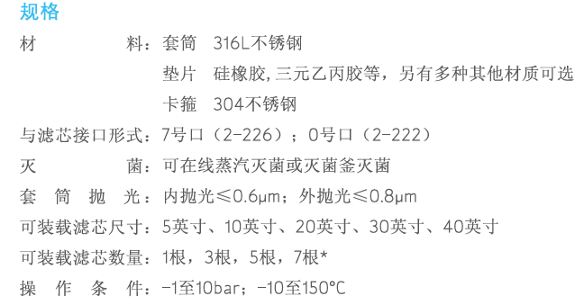 Milipore制藥級(jí)不銹鋼過(guò)濾套筒技術(shù)參數(shù):