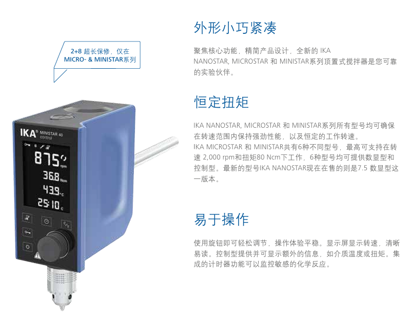 緊湊型高性能 IKA NANOSTAR, MICROSTAR 和 MINISTAR 系列頂置式攪拌器采用了節(jié)約空間的外形設(shè)計(jì),提供完美的基礎(chǔ)功能,同時(shí)易于使用。