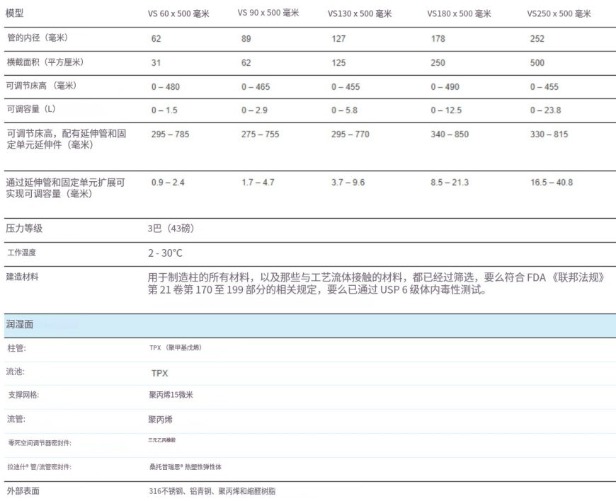 IsoPak® 工業(yè)規(guī)模生物層析柱技術參數(shù):