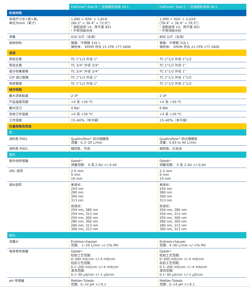 CoPrime® 生產(chǎn)規(guī)模層析系統(tǒng)技術參數(shù):