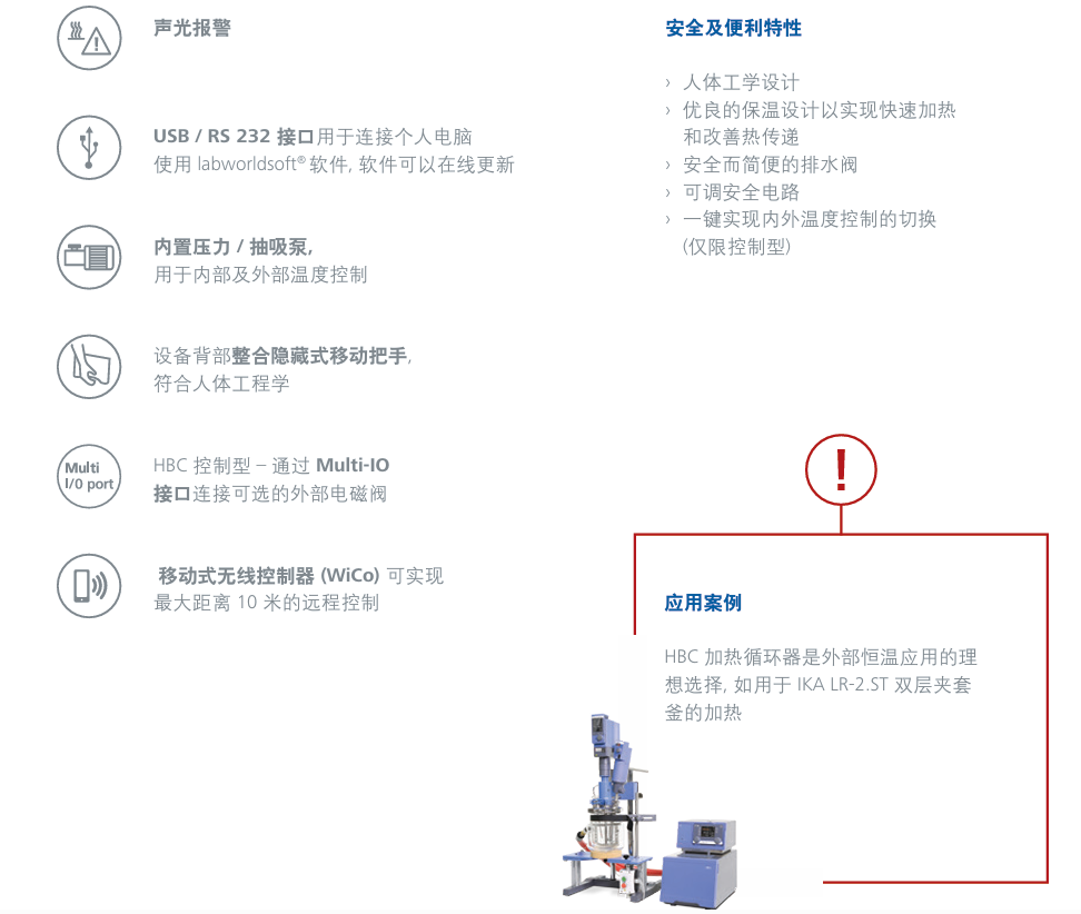 /// 加熱循環(huán)浴槽, 應用于外部控溫 保溫性能優(yōu)良的不銹鋼浴槽及強勁的 PEEK 壓力 / 抽吸泵是 HBC 加熱循環(huán)浴槽的 兩大重要特性。HBC 最高溫度達 + 250 °C,大面積加熱盤管提供最佳的熱交換, 實現導熱介質的快速加熱。