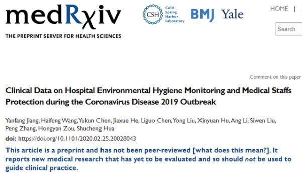 2020年2月27日,吉林大學(xué)第一醫(yī)院華樹成教授團(tuán)隊在醫(yī)學(xué)預(yù)印本網(wǎng)站medRxiv發(fā)表論文《Clinical Data on Hospital Environmental Hygiene Monitoring and Medical Staffs Protection during the Coronavirus Disease 2019 Outbreak》,證實了重癥監(jiān)護(hù)病房的空氣中檢測到了新冠病毒,存在潛在風(fēng)險。